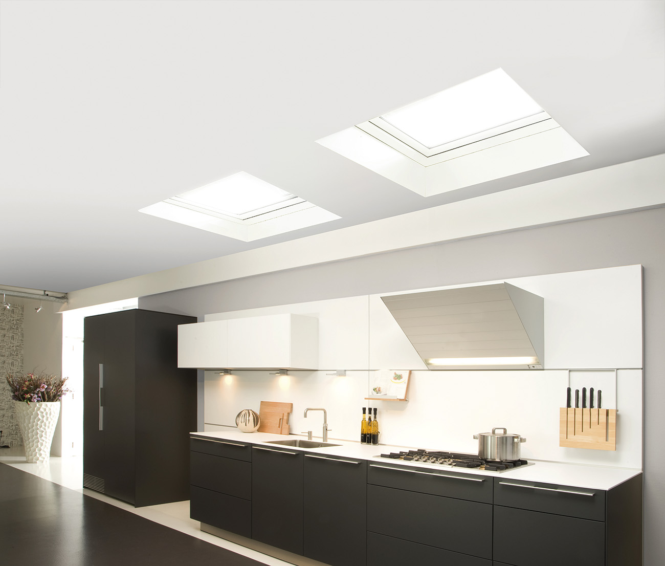 Een vast platdakraam zorgt voor veel daglicht in de ruimte eronder waardoor deze direct frisser en groter oogt. Omdat het raam gesloten blijft vraagt het om weinig onderhoud.